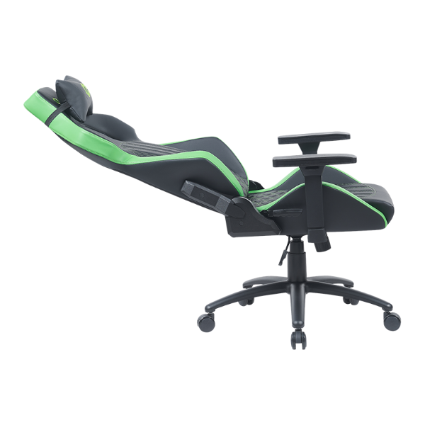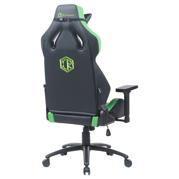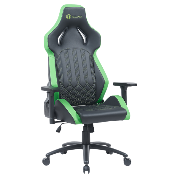 RXGAMER RX-2219 采用高质量的复合面料,黑色与绿色的色调组合。该面料不仅耐用,还具有透气性,确保玩家在长时间使用过程中保持舒适。黑色面料呈现出简洁专业的外观,而绿色面料的点缀则为其增添了一丝时尚感。